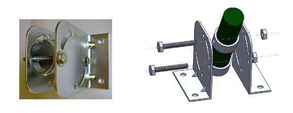根據上圖可知,拓天電子圍欄受力柱底座有左右倆個底座構成,採用80膨脹螺絲4孔固定,且角度可以萬向無極調角度(可選擇90度直立安裝也可以選擇如圖的傾斜安裝),中間添加圓形抱箍墊圈,外部添加螺帽和墊片,保證瞭圍欄的整體強度。另外底座的整個厚度達到3毫米以上且是熱鍍鋅不上繡,使用壽命最低可達到5年以上。