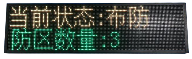 功能描述:1.LED電子屏 F3.75 雙色顯示,豪華大氣 ,直觀,适合所有場(chǎng)所。2.兩行字體顯示,可以顯示在線防區數量,公司LOGO 當前狀态,報(bào)警防區3.安裝方式:挂裝......